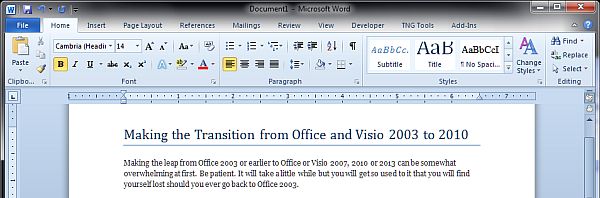 Moving from Microsoft Office 2003 or earlier to Office or Visio 2007, 2010 or 2013 can be overwhelming at first. Be patient. It will take a little while but you will get used to it. In a little while, you may find yourself lost should you ever go back to Office 2003.
