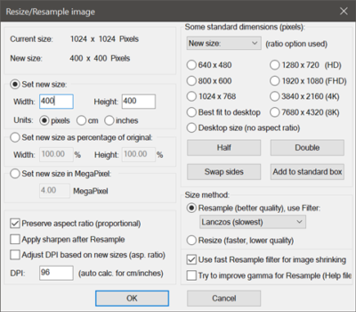 Irfanview is a very powerful image viewer that supports almost every known image file format, especially if you have also installed the extension pack. Some file formats require support in your operating system (called codec) such as for HEIC and AV1. It can be used to resizes images. I’ve tested several other images resizing tools but this one produces almost identical quality to Photoshop. Best of all, it is free for non-commercial use. For commercial use, you will need to contact the developer for current pricing. I think it was only about $10-12 USD at one point in the past.